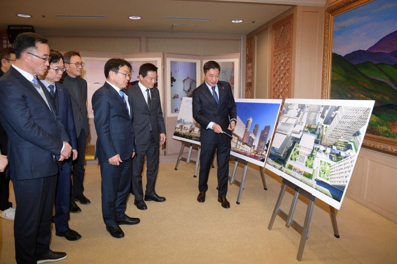 광주시와 신세계는 5일 시청 비즈니스룸에서 “광천터미널 복합화사업 도시계획변경 사전협상 결과 대시민 보고회 및 투자 양해각서 체결식”을 개최했다. 광주시는 개발계획과 공공기여금 1497억 원 협상 결과, 광천권역 교통 대책 등을 발표하고 신세계와 3조 원 규모의 투자 양해각서를 체결했다.