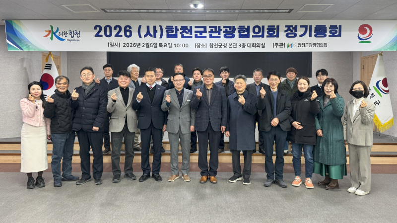 (사)합천군관광협의회(회장 김해식)는 5일 합천군청 3층 대회의실에서 김해식 회장과 박민좌 경제문화국장, 조홍남 관광진흥과장, 협의회 회원 등 30여 명이 참석한 가운데 2026년 정기총회를 개최했다.