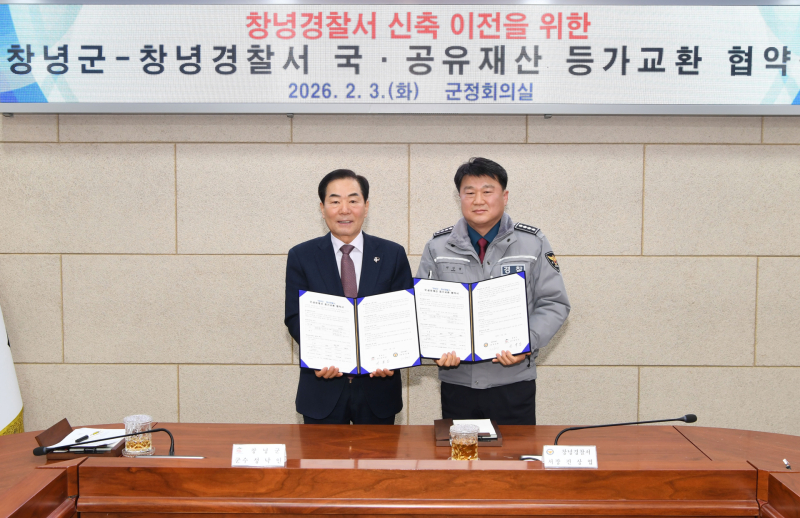 창녕군은 3일 군청 군정회의실에서 창녕경찰서와 ‘창녕경찰서 신축 이전을 위한 국·공유재산 등가교환 협약’을 체결했다.