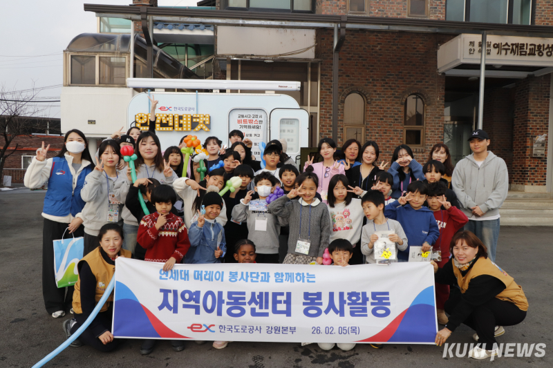 한국도로공사 강원본부(본부장 황재희)는 지난 5일 지역 대학생들과 횡성지역아동센터를 방문해 교통안전 의식을 높이기 위한 ‘안전 네 컷’ 체험 봉사활동을 실시했다.