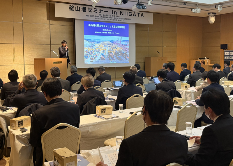 실제로 니가타 지역에서 유럽 함부르크까지 화물을 운송할 경우 부산항에서 환적하면 일본 주요 항만을 이용하는 것과 비교해 리드타임은 거의 동일한 반면 물류비는 약 30% 절감할 수 있는 사례도 소개됐다.