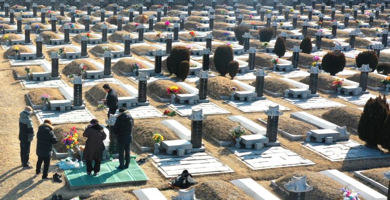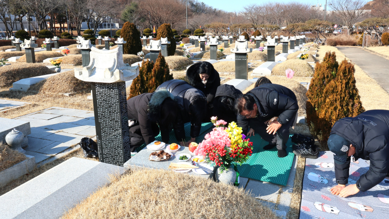 설 연휴를 앞둔 8일 인천 부평구 인천가족공원을 찾은 성묘객들이 성묘하고 있다.