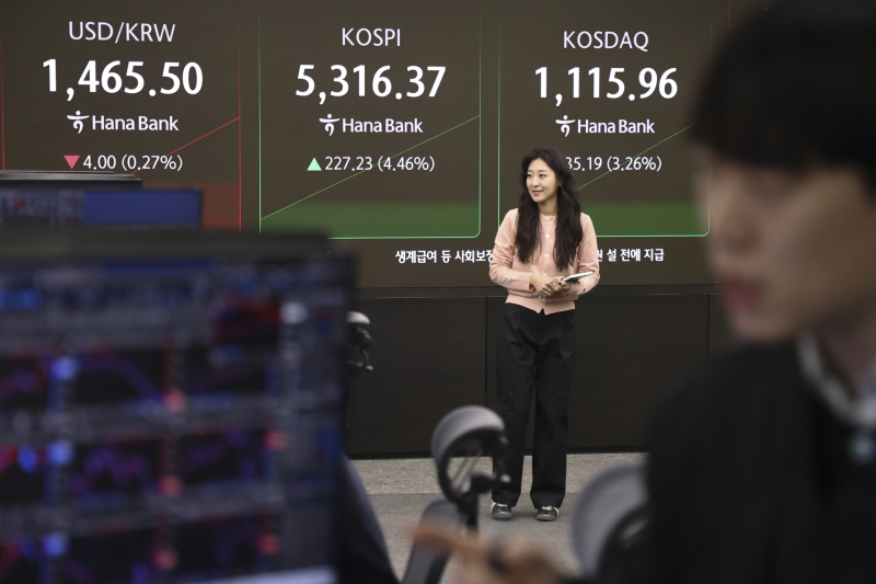 9일 한국거래소(KRX)에 따르면 이날 오전 9시45분 현재 코스피는 전 거래일 대비 4.51% 상승한 5318.65을 기록 중이다. 이날 코스피는 5299.1에서 출발 한 직후 오름폭을 키우며 5300선을 넘어서기도 했지만 이내 다시 5300선 아래로 내려섰다. 이후 다시 상승폭을 키우고 있다.