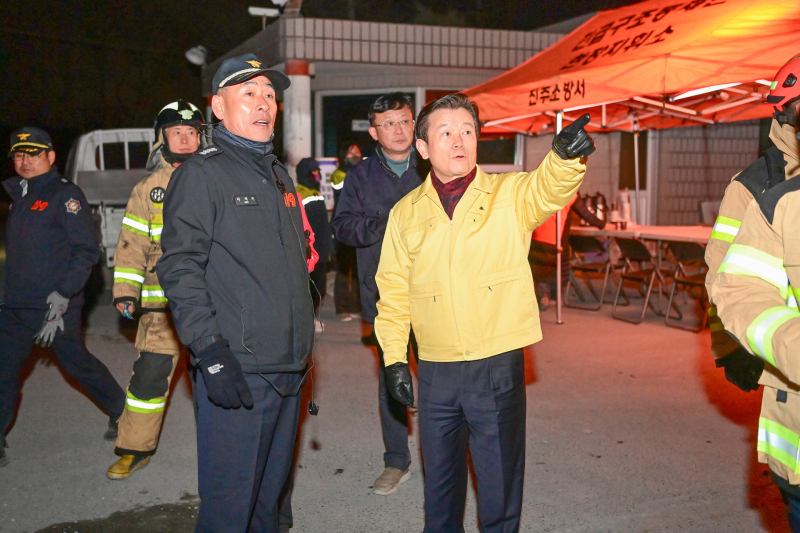 화재 보고 직후 현장을 방문한 조규일 시장은 진화 상황을 직접 점검하며 산불 확산 차단, 2차 폭발 위험요소 제거, 주민 안전 확보, 유관기관 협업 강화 등을 중점적으로 지시하고, 신속하고 체계적인 대응을 당부했다.