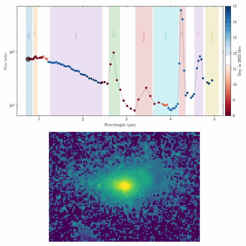 특히 지난해 12월 관측 당시 혜성의 코마가 크게 확장된 상태에서 넓은 시야를 한 번에 볼 수 있는 광시야 성능을 가진 스피어엑스가 혜성 전체의 모습을 담고 다양한 유기물질 방출 정보를 확보했다.