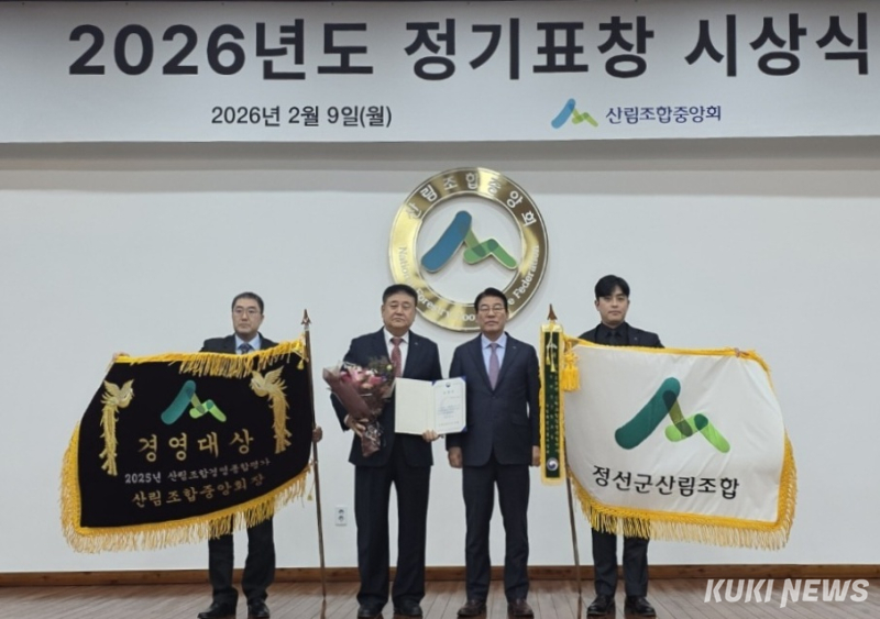 정선군산림조합은 이날 서울 송파구 산림조합중앙회 청사에서 열린 ‘2026년 정기표창 시상식’에서 전국 산림조합 중 최고 영예인 경영대상을 받았다.