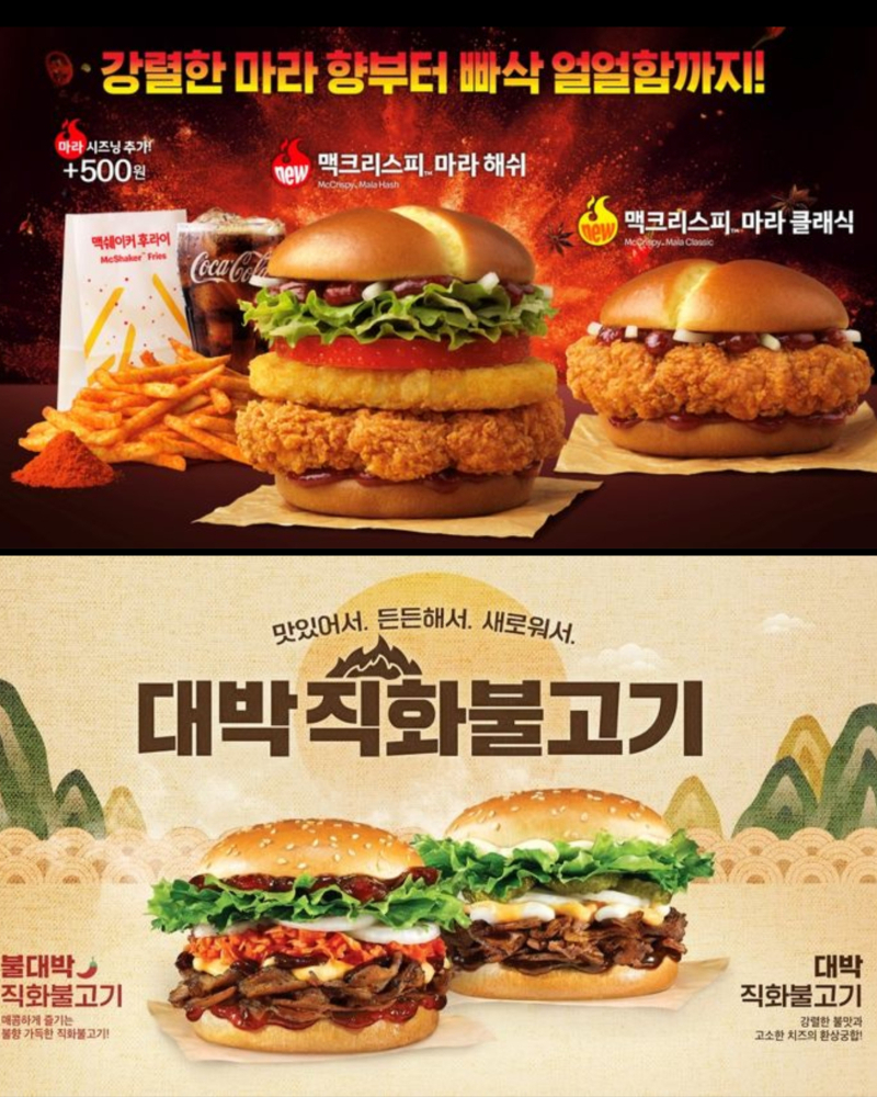 글로벌 브랜드 역시 치킨 패티 강화에 속도를 내고 있다. 맥도날드는 닭다리살 패티에 매운 마라 소스를 결합한 ‘맥크리스피 마라 버거’ 2종을 선보이며 국내 소비자 취향을 겨냥했다. 해쉬브라운을 더한 제품과 소스의 풍미를 강조한 버전으로 라인업을 나누고, 감자튀김이나 맥너겟에 뿌릴 수 있는 ‘마라 시즈닝’까지 함께 내놓으며 메뉴 확장에 나섰다. KFC코리아도 치킨 필렛을 두 배 늘린 ‘더블 커넬 오리지널’을 출시해 주력 분야인 치킨버거 경쟁력을 끌어올렸다.