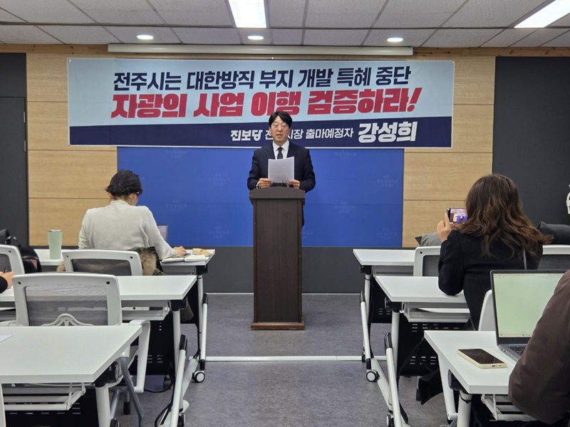 강 출마자는 10일 오전 전주시청 브리핑룸에서 기자회견을 열고 “전주 대한방직 부지 개발사업 시행사 자광은 6조원 규모의 대형 개발사업을 추진하고 있지만, 시공사 계약과 PF 자금조달에 대한 실질적 확약을 제시하지 못하고 있다”면서 “이런 상황에서 11일 ‘페스타’를 여는 것은 시민의 기대를 부풀려 사업의 불확실성을 가리는 행위”라고 비판했다.