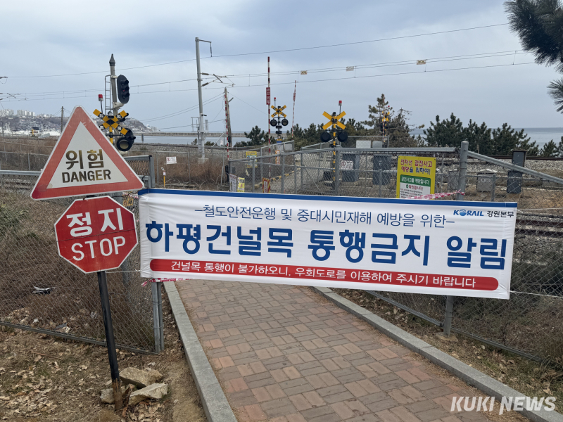 10일 동해시와 코레일 등에 따르면 하평해변으로 이어지는 철도 건널목 일대는 바다 풍경을 배경으로 한 사진 촬영 명소로 알려지며 최근까지 방문객이 꾸준히 찾던 공간이었다. 해변 동선과 자연스럽게 연결돼 인근 공원 이용객과 관광객의 이동 경로로도 활용돼 왔다.