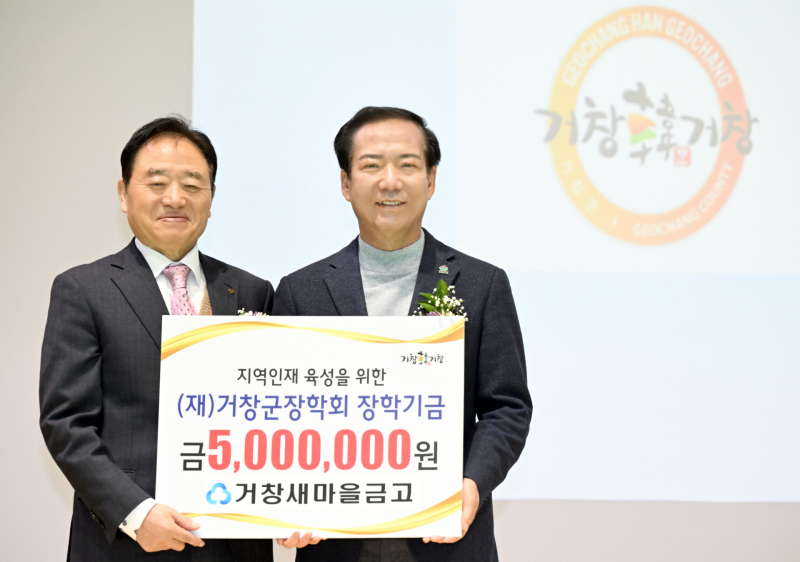 (재)거창군장학회는 지난 7일 거창새마을금고가 거창스포츠파크 실내체육관에서 회원 500여명이 참석한 ‘제53차 정기총회’ 중 미래인재 육성을 위해 장학금 500만원을 기탁했다.