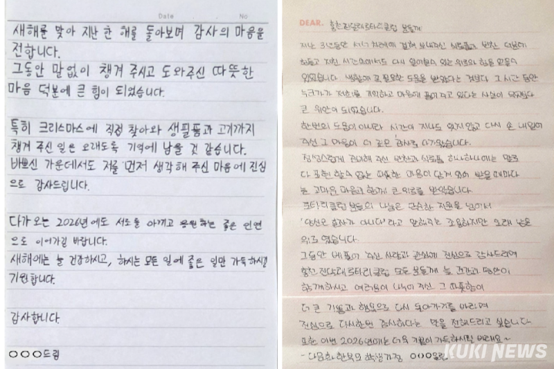 이런 가운데 최근 한 한부모가정의 학생이 손 편지를 보내 "정성스럽게 준비해 주신 반찬과 식료품은 말로 다 표현할 수 없는 따뜻했고 큰 위로를 받았다"라며 "혼자가 아니라는 말로 함께해 줘 큰 위안이 되었다"라며 감사의 인사를 전했다.