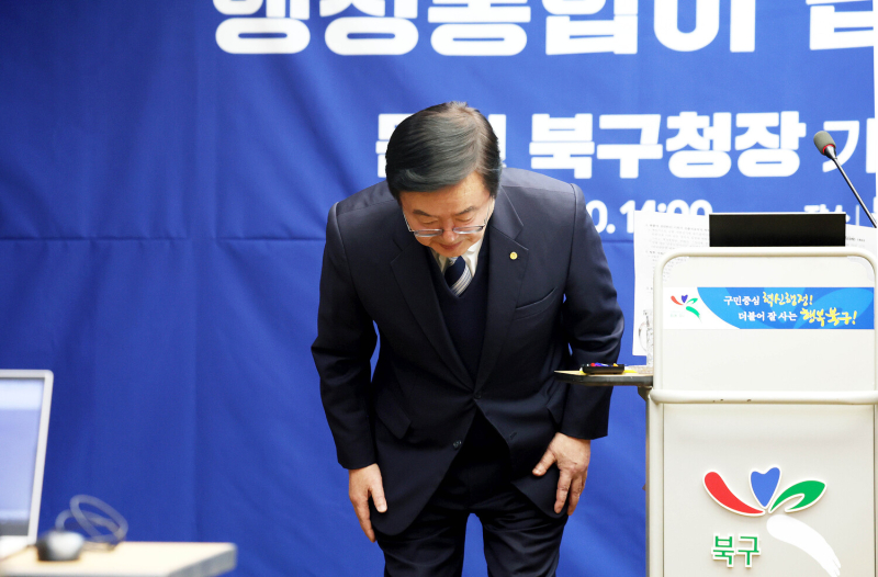 문 구청장은 10일 기자간담회를 통해 “올해 지방선거에서 북구청장 선거에 불출마하겠다”고 말했다. 특히 광주·전남 행정통합 추진 과정에서 불거진 사임 번복 등 이른바 ‘갈지자 행보’로 지역 사회에 혼선을 초래한 점에 대해 공식 사과했다.