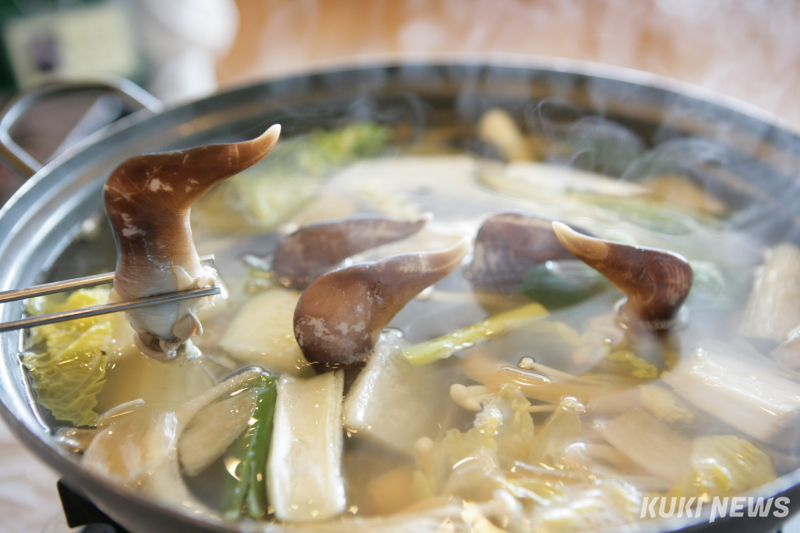 새 부리 모양을 닮은 독특한 생김새의 새조개는 1∼3월이 제철이며, 이때 속살이 가장 통통하게 올라 쫄깃함과 감칠맛이 최고조에 달해 미식 여행의 추억을 만들 수 있다.