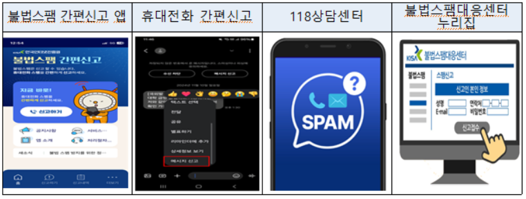 방미통위는 “불법스팸이 의심되는 문자에 포함된 URL은 누르지 말고 전화도 받지 않아야 한다”며 “불법스팸 간편신고 앱과 휴대전화 간편신고, 불법스팸대응센터(118)에 신고해 이용자 피해 확산 방지에 참여해 줄 것을 당부한다”라고 말했다.