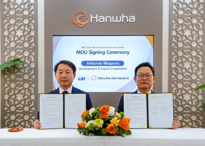 KAI는 11일 사우디아라비아 리야드에서 열리고 있는 '제3회 세계방산전시회(World Defense Show 2026)'에서 LIG넥스원, 한화에어로스페이스와 각각 양해각서(MOU)를 체결했다. 이번 협약은 KF-21과 FA-50의 수출 경쟁력 강화를 위한 국산 항공 무장 개발 및 통합, 공동 마케팅 추진 등을 골자로 한다.