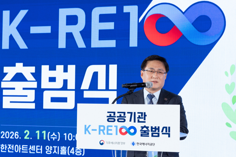 김성환 기후에너지환경부 장관은 11일 한전아트센터에서 열린 ‘공공기관 K-RE100 출범식’에서 이같이 말하며 공공기관의 재생에너지 전환을 본격화하겠다고 밝혔다. 이어 그는 “재생에너지를 확대하면 더 높이 평가하고 공공기관이 솔선수범할 수 있도록 만들어야 한다”며 공공기관이 에너지 전환의 마중물이 될 것이라고 강조했다.
