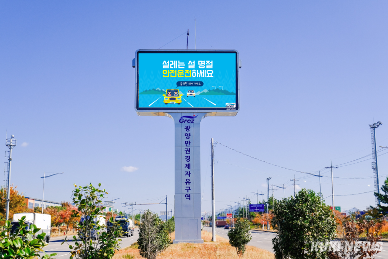 광양경자청은 2022년 11월부터 대형 전광판을 통해 지역 개발 소식과 공공정보를 주민에게 전달해 왔으며, 특히 명절이나 휴가철과 같이 방문객이 증가하는 시기에는 공익성과 실효성이 높은 안전 콘텐츠를 우선적으로 송출하고 있다.
