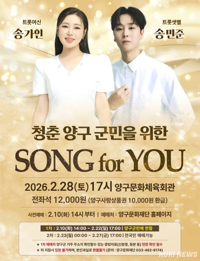 한편, 이번 공연은 군민 우선 관람 원칙에 따라 공연 당일 입장 시 신분증(주민등록증, 운전면허증 등)을 통한 본인 확인이 필수이며, 군민 확인이 되지 않을 경우 입장이 제한될 수 있다.