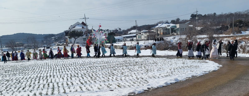 황도 붕기풍어제는 과거 안개 속에서 길을 잃은 어민들이 지금의 당집이 있는 당산의 불빛을 따라 무사히 귀환했다는 유래에서 시작됐다.