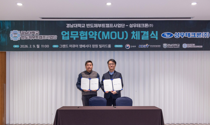 경남대학교 반도체부트캠프사업단이 성우테크론과 손잡고 AI 융합형 반도체 맞춤형 인재양성에 본격 나선다.
