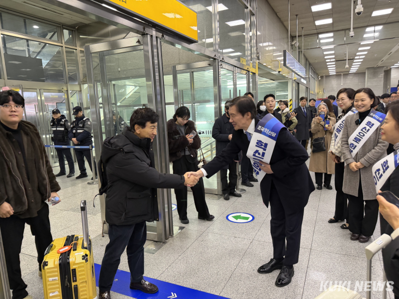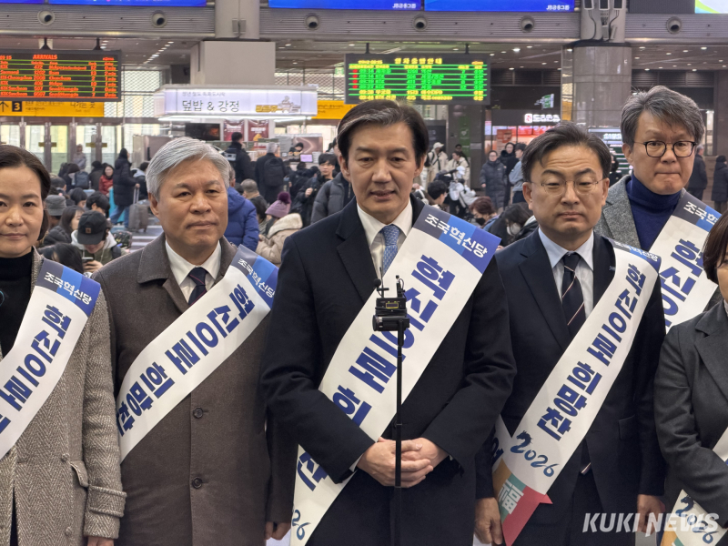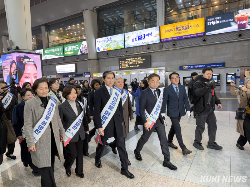 조국 조국혁신당 대표와 지도부는 13일 오전 용산역 대합실과 승강장 입구에서 시민들과 악수하며 “새해 복 많이 받으시라”고 인사를 건넸다. 일부 시민들은 발걸음을 멈추고 사진 촬영을 요청하기도 했다.