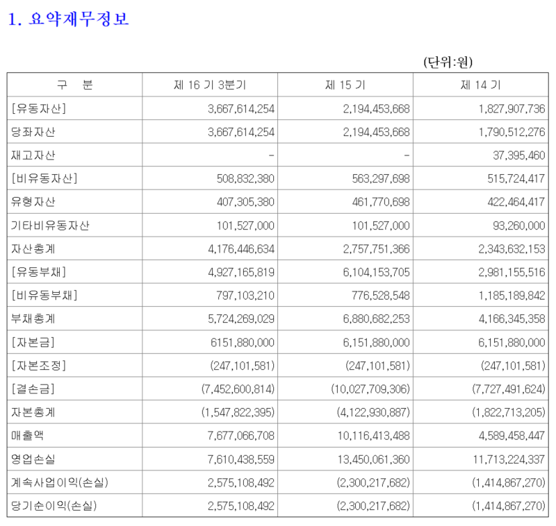 또 “단기 차입금 46억 원 중 지난해 8억 원을 상환했으며, 올해 14억 원, 내년 19억 원을 차례로 상환해 나갈 구체적 계획을 갖추고 있다”고 밝혔다. 그러나 회계감사에서 '존속 능력 의문' 경고를 받은 점에 대해서는 “중장기 발전 계획을 통해 재무 건전성을 확보하겠다”고 답했다.