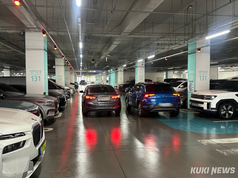 현장에서는 2중 주차는 물론 주차금지 구역에 차량이 줄지어 선 모습도 어렵지 않게 볼 수 있었다. 이날 오전 8시50분 기자가 찾은 서편 주차장 지상 1~3층은 모두 만차 상태였다. 여러 차례 주차장을 돌아다닌 끝에야 겨우 빈자리를 찾을 수 있었다.