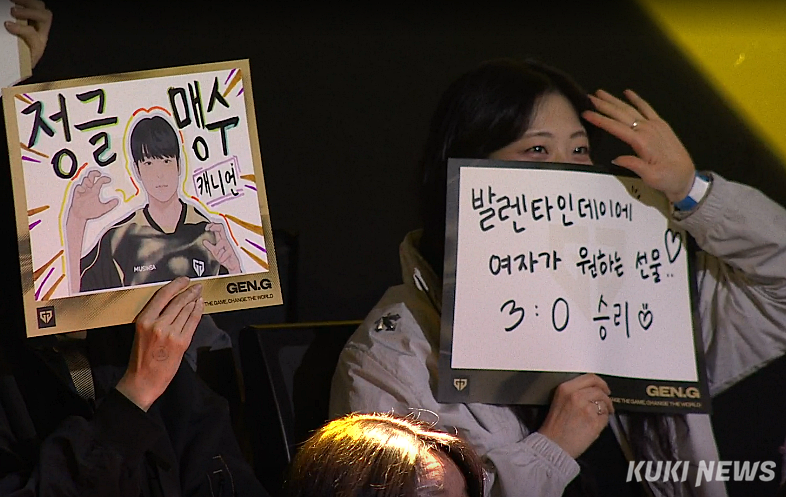 밸런타인데이에 펼쳐지는 승부인 만큼 현장을 찾은 여성 팬들의 응원 열기도 뜨거웠다. 한 여성 팬은 “밸런타인데이에 여자가 원하는 선물 3-0 승리”라며 젠지를 응원했고, 다른 팬은 “여성이 원하는 선물은 디플러스 기아의 승리”라고 맞불을 놓기도 했다.