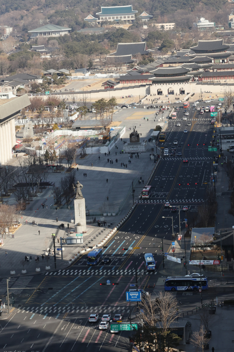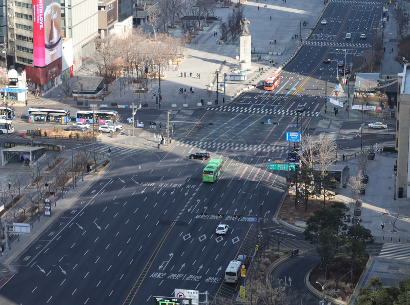 설을 하루 앞둔 16일 서울 광화문 거리가 비교적 한산한 모습을 보이고 있다.