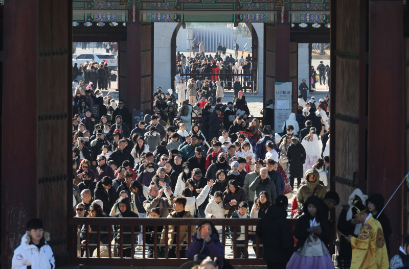 설날인 17일 서울 경복궁이 관람객들로 붐비고 있다.