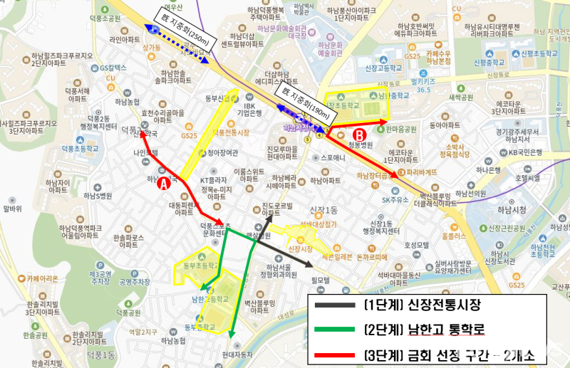 덕풍시장 구간은 기존 지중화 사업 구간과 맞닿은 연장 노선으로, 시는 단절 없는 사업 확장을 통해 도시 정비 효과를 극대화할 방침이다. 남한중~장지마을 구간은 기존 2단계 사업과 마찬가지로 '안전한 학교 가는 길' 조성에 집중하게 된다.