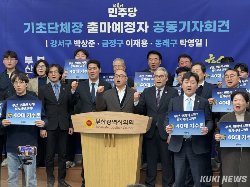 더불어민주당 소속 40대 정치인들이 기초단체장 출마 공동 기자회견을 열고 '40대 기수론'을 내세우며 부산 정치 세대교체를 선언했다.