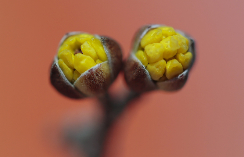 24절기 중 두 번째 절기 우수(雨水)인 19일 경남 함양군 하림공원 작은영화관 옆 가로수에 산수유가 꽃망울을 터트리고 있다.