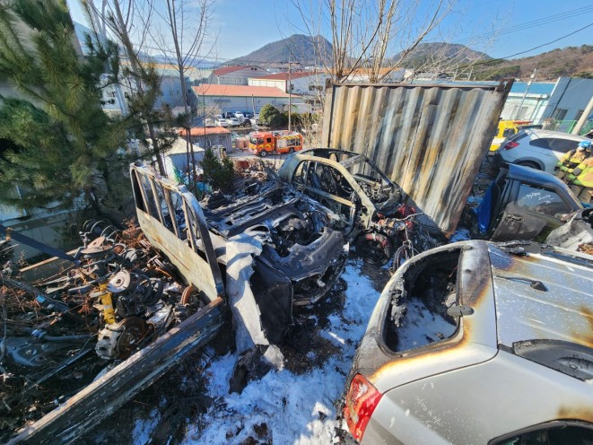 재산피해는 컨테이너 일부와 폐차 등이 소실돼 약 193만6천원(소방서 추산)으로 집계됐다.
