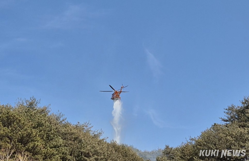 신고를 받고 헬기 4대 등이 투입되면서 35분 만인 오전 11시 27분쯤 불길을 잡았다.