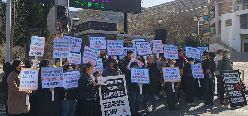 집회 참가자들은 임시이사회에 대해 ▲부당 전보 즉각 취소 ▲교권 침해 및 직장 내 괴롭힘 중단 ▲공금횡령 교사의 교장 자격연수 추천 철회를 요구했다.