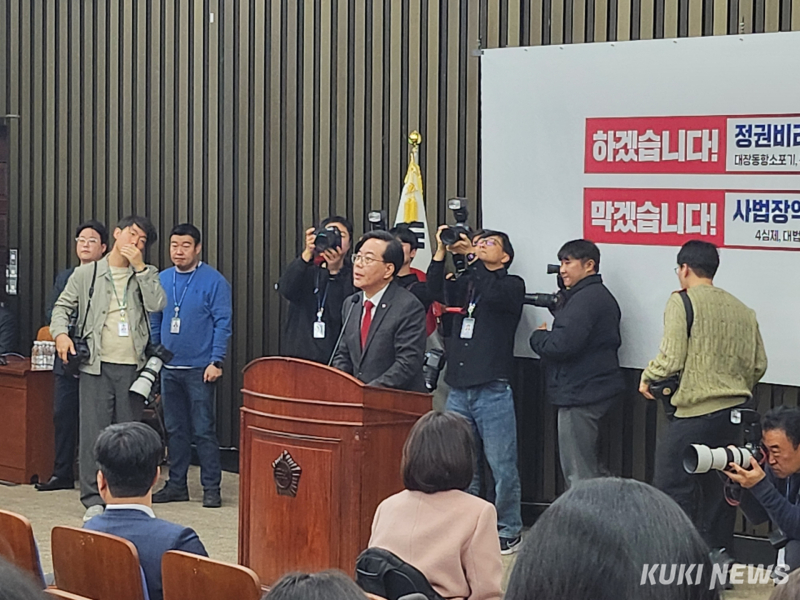 이어 “법 왜곡죄는 결과적으로 검사들에게 이 대통령에 대한 공소를 취하하지 않을 경우 고소·고발을 당할 수 있다는 협박이 될 수 있다”며 “대법관 증원은 이 대통령과 민주당의 입맛에 맞는 대법관으로 대법원을 장악해 사법부를 흔들려는 시도”라고 강조했다.