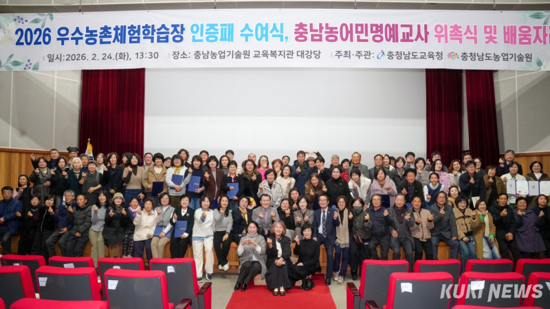 1부 행사에서는 △2026년 학교 텃밭 사업 계획 안내 △성희롱·성폭력 및 아동 학대 예방 연수(김은경 강사)를 진행해 교육 현장의 안전과 성 인지 감수성을 높였으며, 2부 행사에는 △2025학년도 학교 텃밭 가꾸기에 기여한 농어민명예교사 13명에 대한 표창 △우수 농촌체험학습장 인증패 수여(55곳) △2026학년도 활동 예정인 충남농어민명예교사 99명 위촉장 전수가 진행됐다.