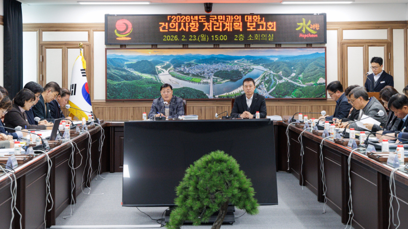 경남 합천군은 23일 군청 소회의실에서 ‘2026년 군민과의 대화’에서 접수된 건의사항에 대한 처리계획 보고회를 열었다.