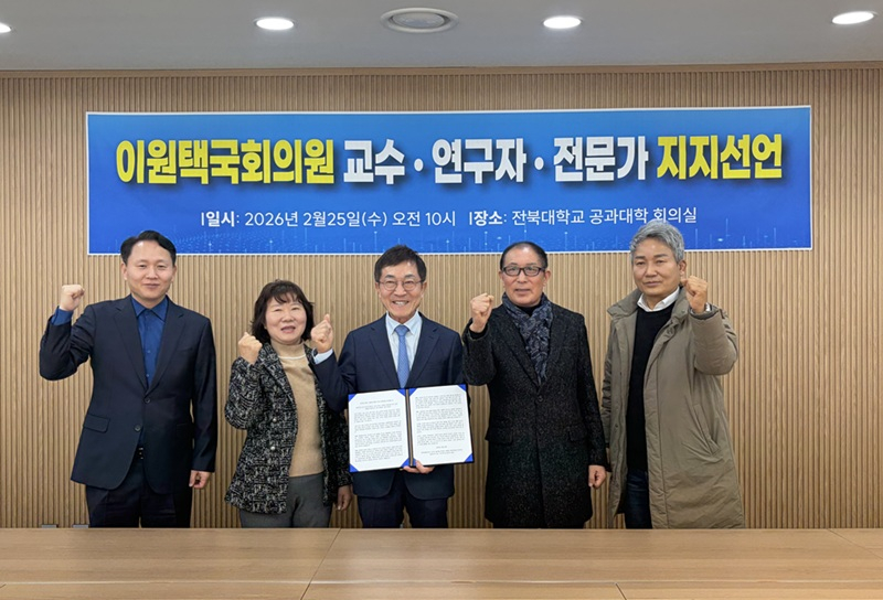 교수·연구자·전문가 그룹은 “이원택 의원의 내발적 발전전략은 탄탄한 과학기술 인프라와 교육혁신을 바탕으로 설계된 점에서 현실적이고, 이 의원이야말로 전북의 학문적 지평을 넓히고 미래 산업의 초석을 다질 준비된 리더”라고 평가했다.