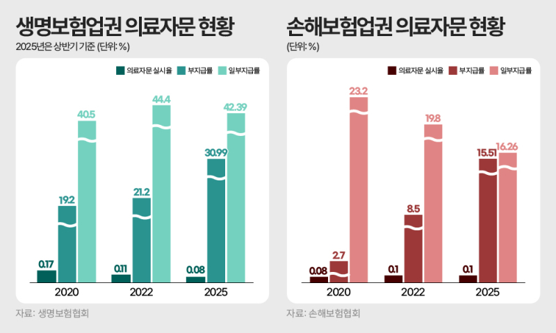 하지만 소비자 입장에서는 상황이 다르게 느껴질 수 있다. 이미 병원에서 치료와 진단을 받았는데, 또 다른 의사의 판단으로 보험금 지급 여부가 바뀔 수 있기 때문이다.실제로 의료자문 결과를 이유로 보험금이 지급되지 않거나 줄어드는 사례도 적지 않다. 2025년 상반기 기준 보험사가 의료자문을 의뢰한 건 중 생명보험은 10건 중 7건 이상, 손해보험은 약 3건에서 보험금 일부 또는 전부가 지급되지 않았다. 이 비중은 최근 증가하는 추세다.