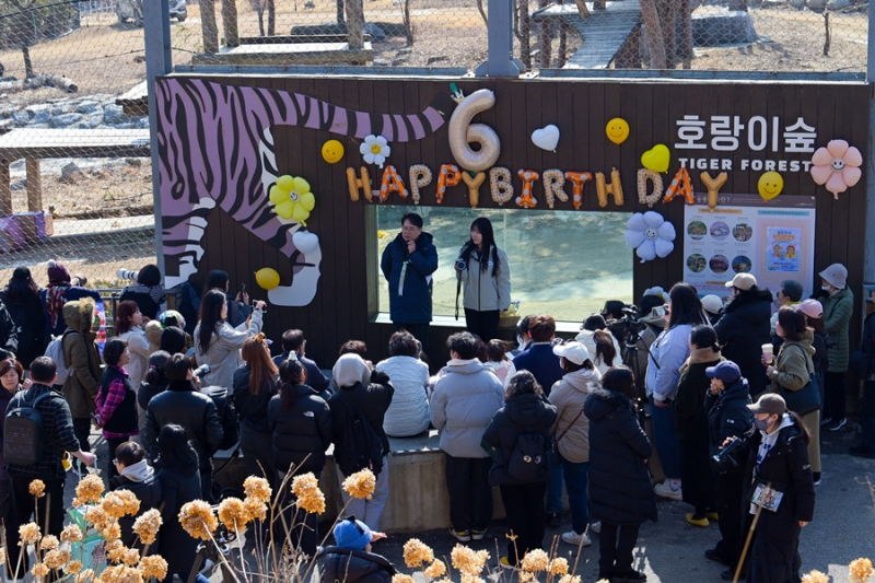 국립백두대간수목원의 백두산호랑이 ‘태범’과 ‘무궁’ 남매의 6번째 생일을 맞아 개원 이래 최다 인파가 몰렸다.