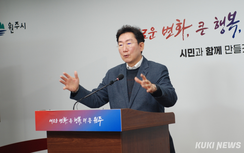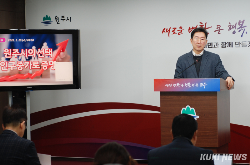원강수 강원 원주시장은 25일 시청 브리핑룸에서 기장회견을 열고 “전국적인 인구 감소와 지방 소멸이라는 거대한 위기 속에서 원주는 인구 증가라는 결과를 이뤄냈다”고 강조했다.