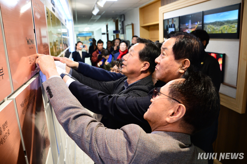 우선 군청 2층 복도에 있는 오프라인 명예의 전당은 1000만원 이상의 고액 기부자를 위한 전용 공간으로 재설계, 기존 동판 부착 형태의 정체성을 유지하면서 공간 효율성을 높인 현대적 디자인이 적용돼 기부자의 자긍심이 높아지도록 했다.