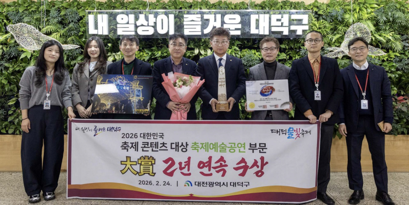 대덕구는 이번 성과를 바탕으로 오는 4월 4~5일 이틀간 대청공원 일원에서 ‘2026 대덕물빛축제’ 메인 행사를 개최한다. 3년 연속 수상의 품격에 걸맞은 한층 강화된 프로그램을 선보일 예정이다.