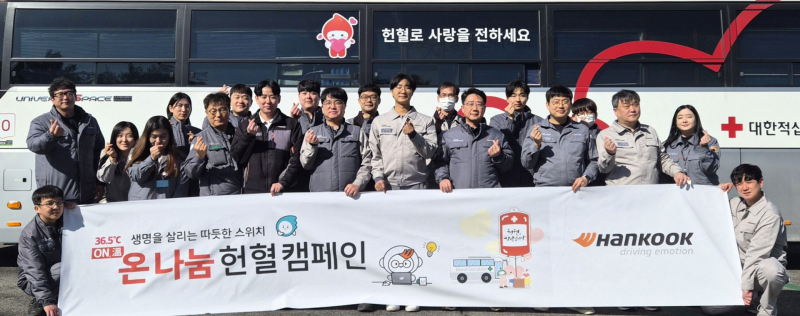 한국타이어는 25일 대전시 소재 대전공장과 한국엔지니어링랩, 충청남도 금산군에 위치한 금산공장에서 ‘ON(溫)나눔 헌혈 캠페인’을 진행했다.