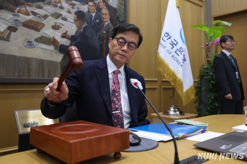 한국은행 금융통화위원회(금통위)가 26일 서울 중구 한국은행 본관에서 통화정책방향회의를 열고 기준금리를 연 2.50%로 동결했다. 정부의 시장 안정 조치에도 불구하고 원·달러 환율이 1400원 중반대에서 장기간 머무르고 있는 데다, 수도권 집값 불안도 지속되고 있는 점을 고려해 추가 금리 인하보다 금융 안정에 방점을 둔 결정으로 풀이된다.