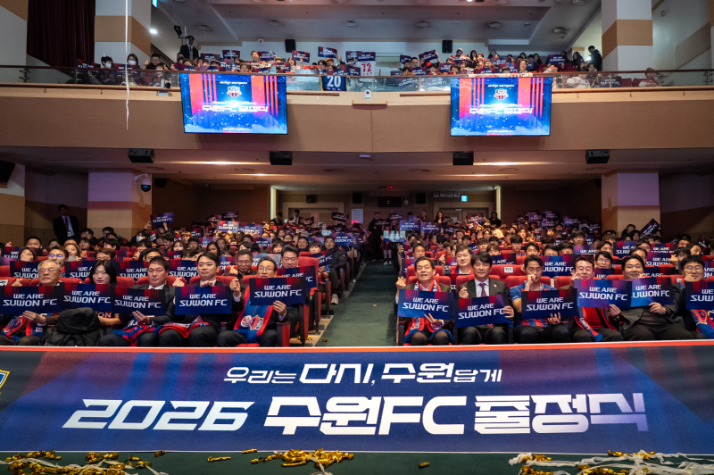 수원FC 2026시즌 출정식이 지난 24일 수원시청 별관 2층 대강당에서 성황리에 개최됐다. 1부 승격을 노리는 남자팀은 물론 아시아 무대 도전에 나서는 여자팀이 함께 모여 각오를 다졌다.