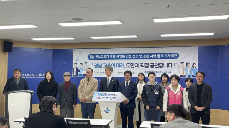 경남 진보교육감 후보 단일화 경선이 공식 선언됐다. 시민 참여를 전면에 내세운 ‘도민공천제’ 도입과 정책 중심의 공개 검증을 통해 단일 후보를 선출하겠다는 구상이다.