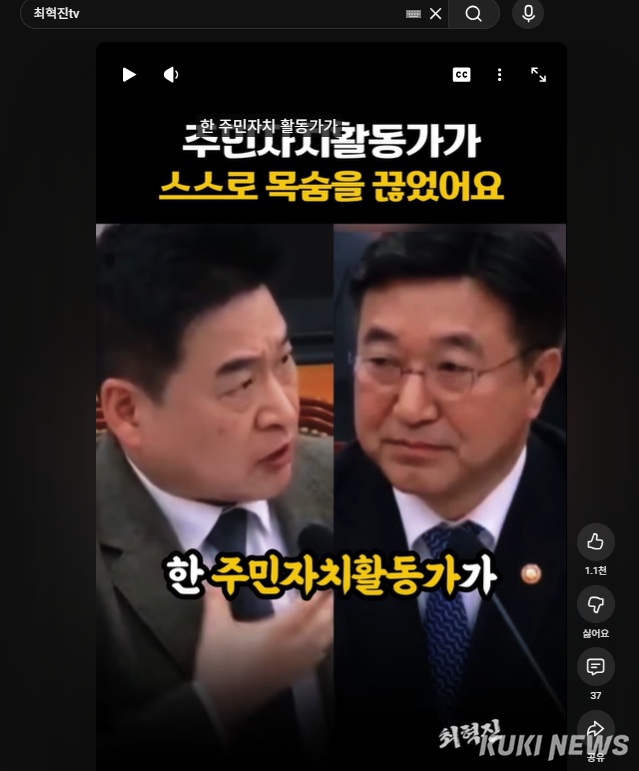 26일 쿠키뉴스 취재를 종합하면 최혁진 의원은 지난 23일 국회 법사위에서 경찰 수사대상이 된 원주시 주민자치 활동가 사망을 두고 공직자를 탓하는 발언을 했다.